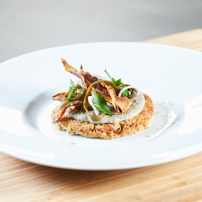 For this cauliflower tart, lentil cream, seaweed, and crisps recipe, you can allow 50 minutes of preparation.
